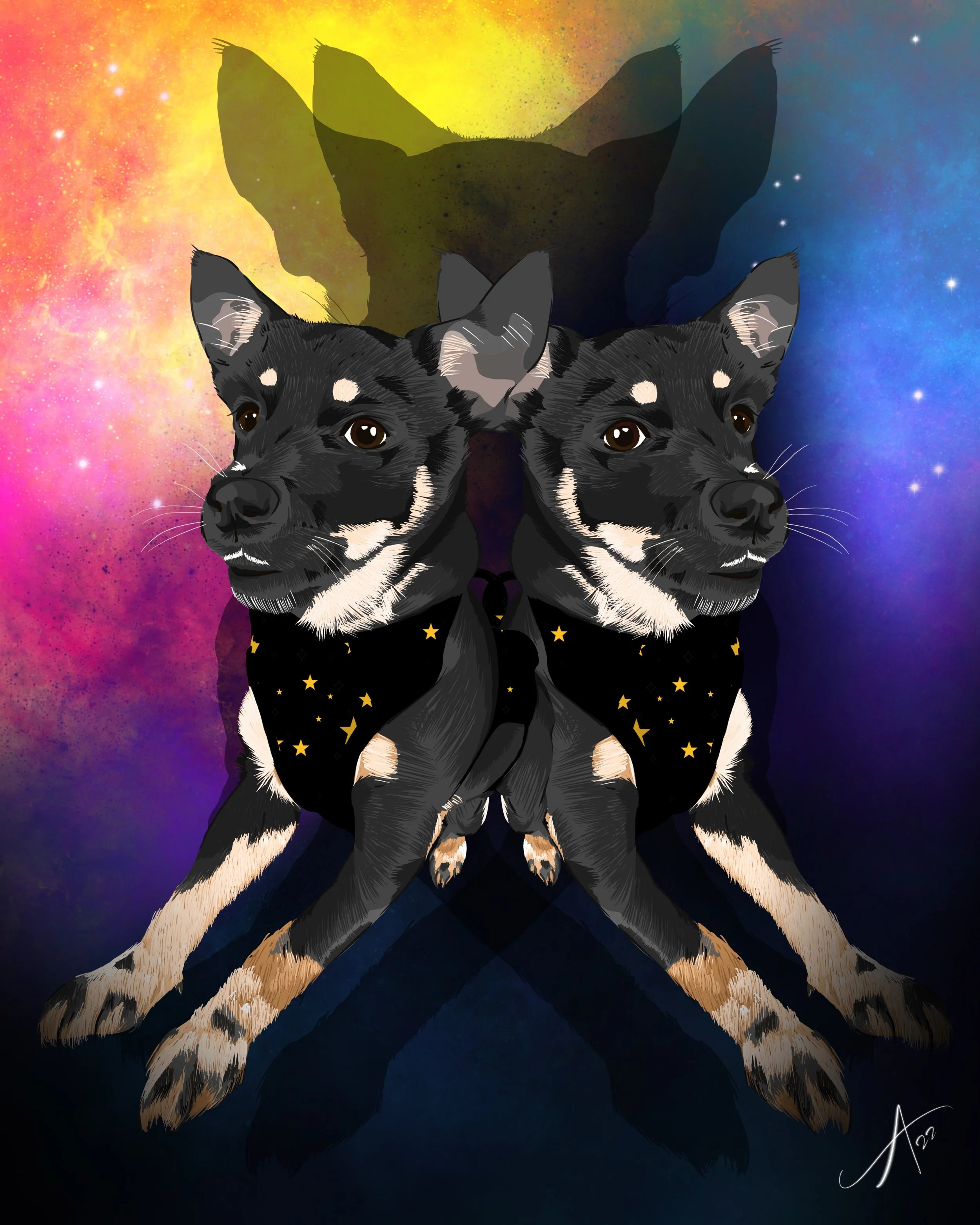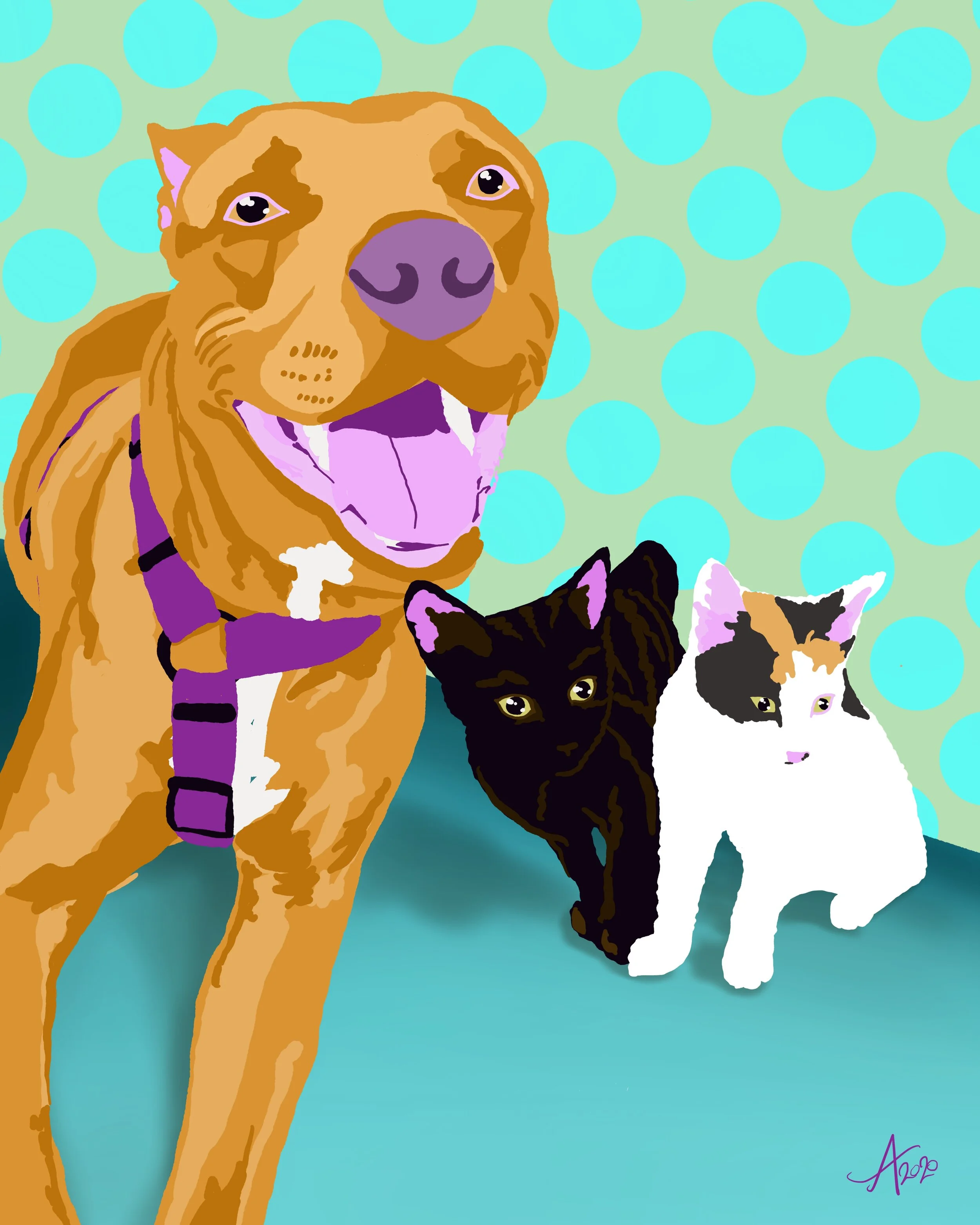 Mainly pets, but people too. All portraits are created as a high res file and shared with you to print as you please!