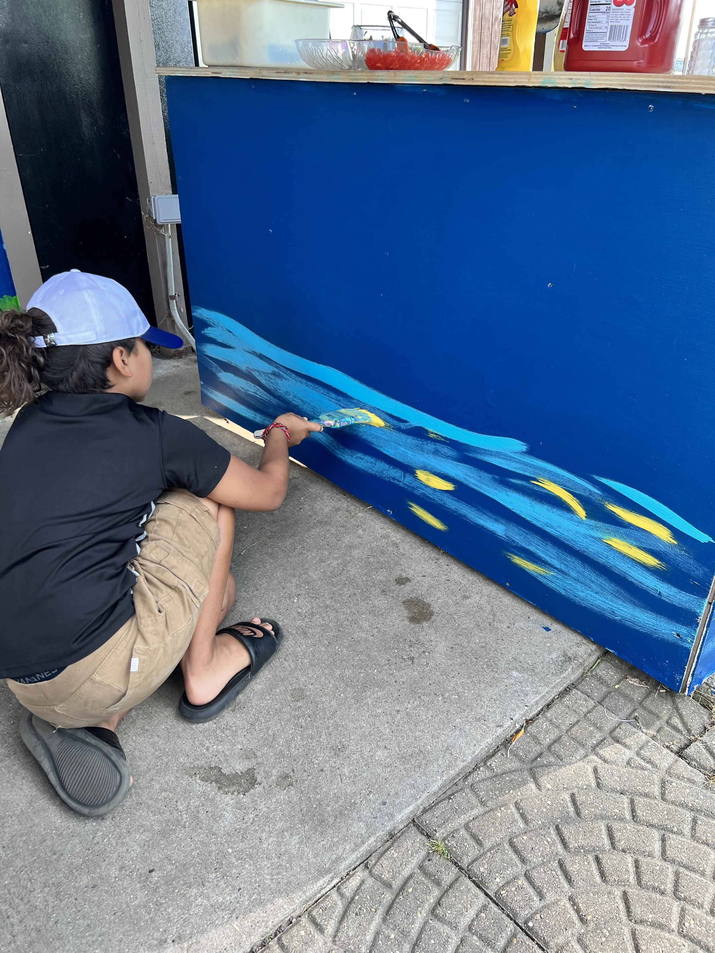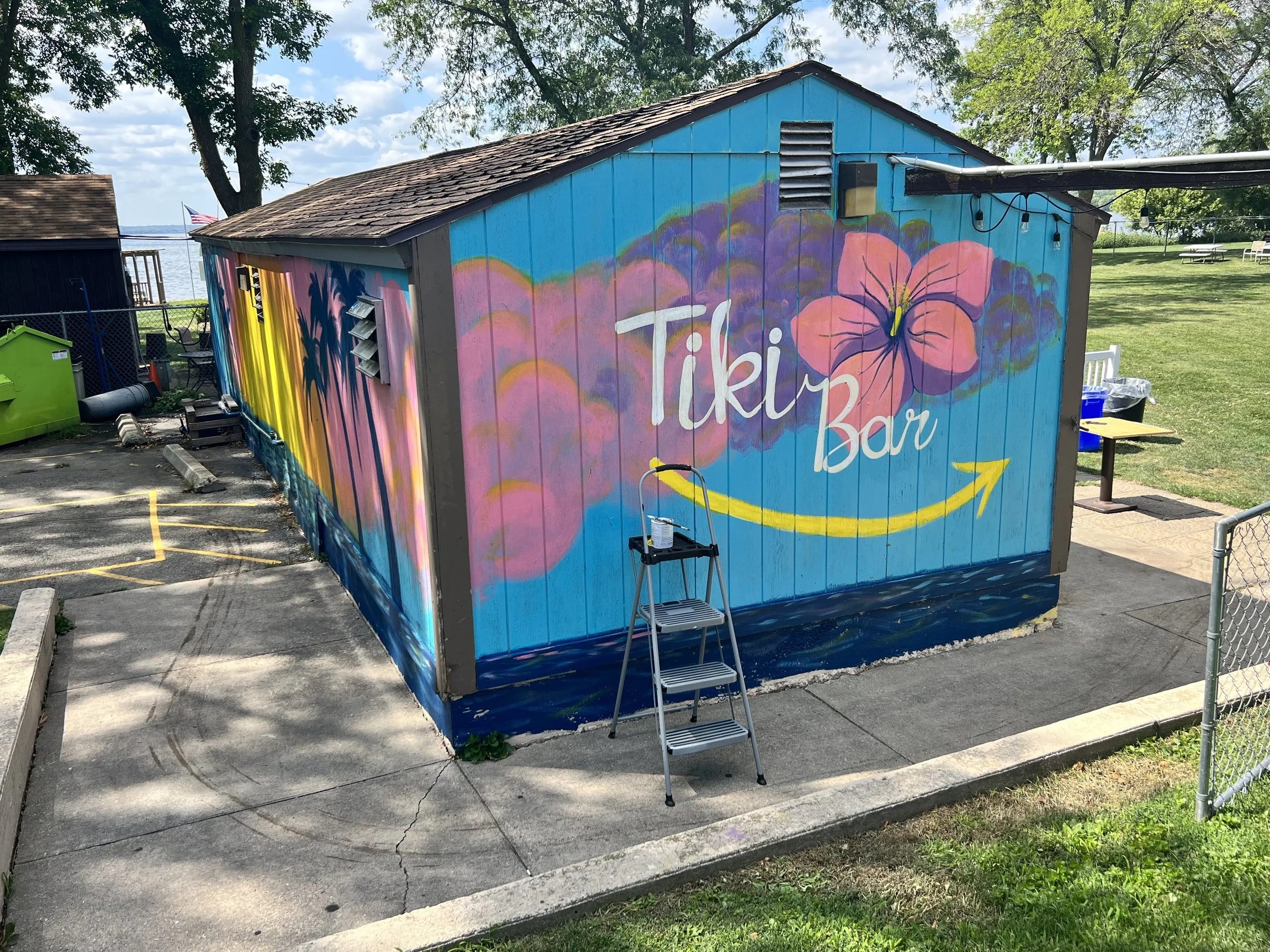 They brought me in and I harnessed my inner Trini girl and love of painting large, and brought paradise to the Tiki Bar!